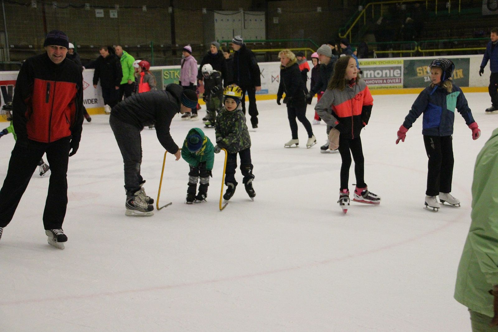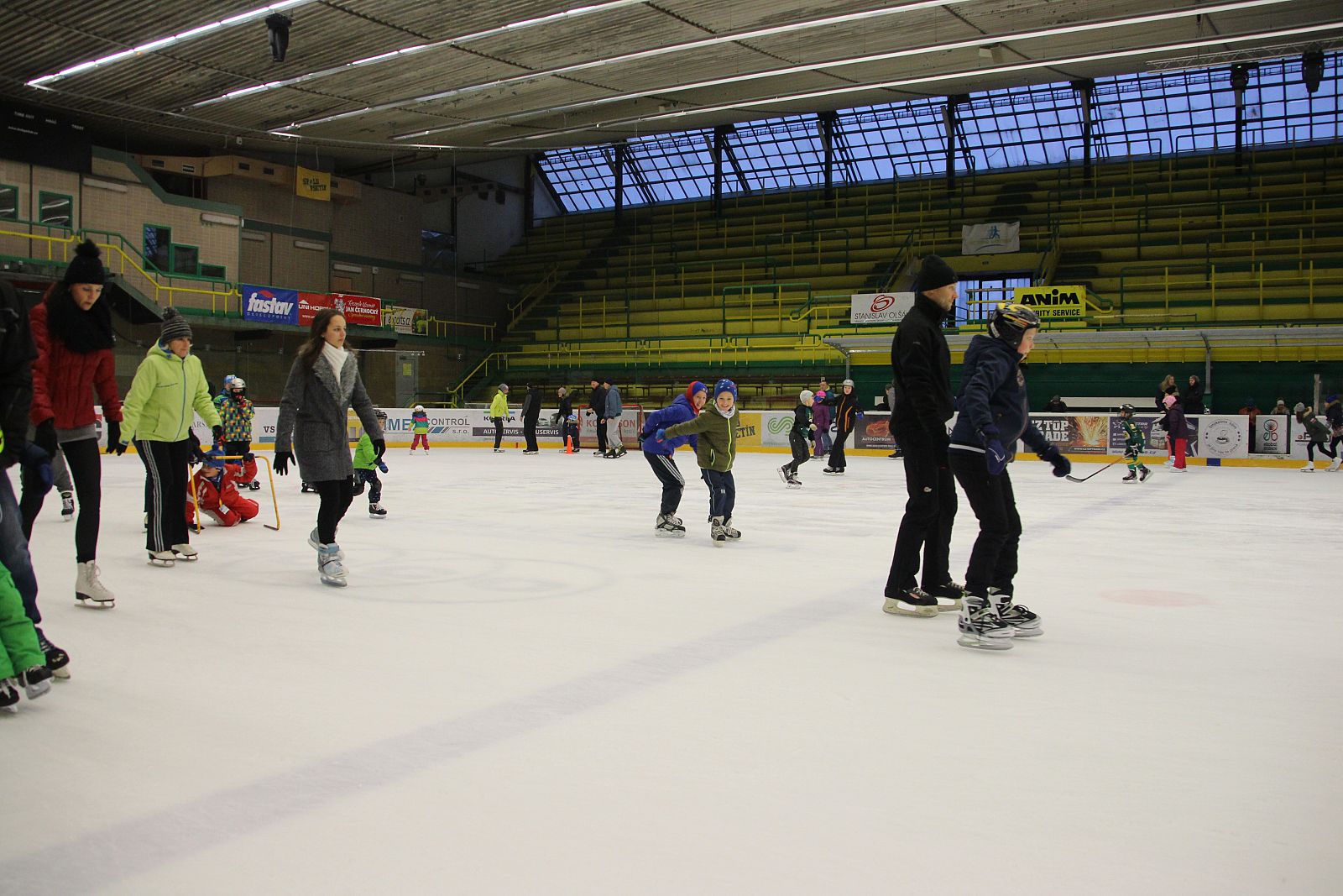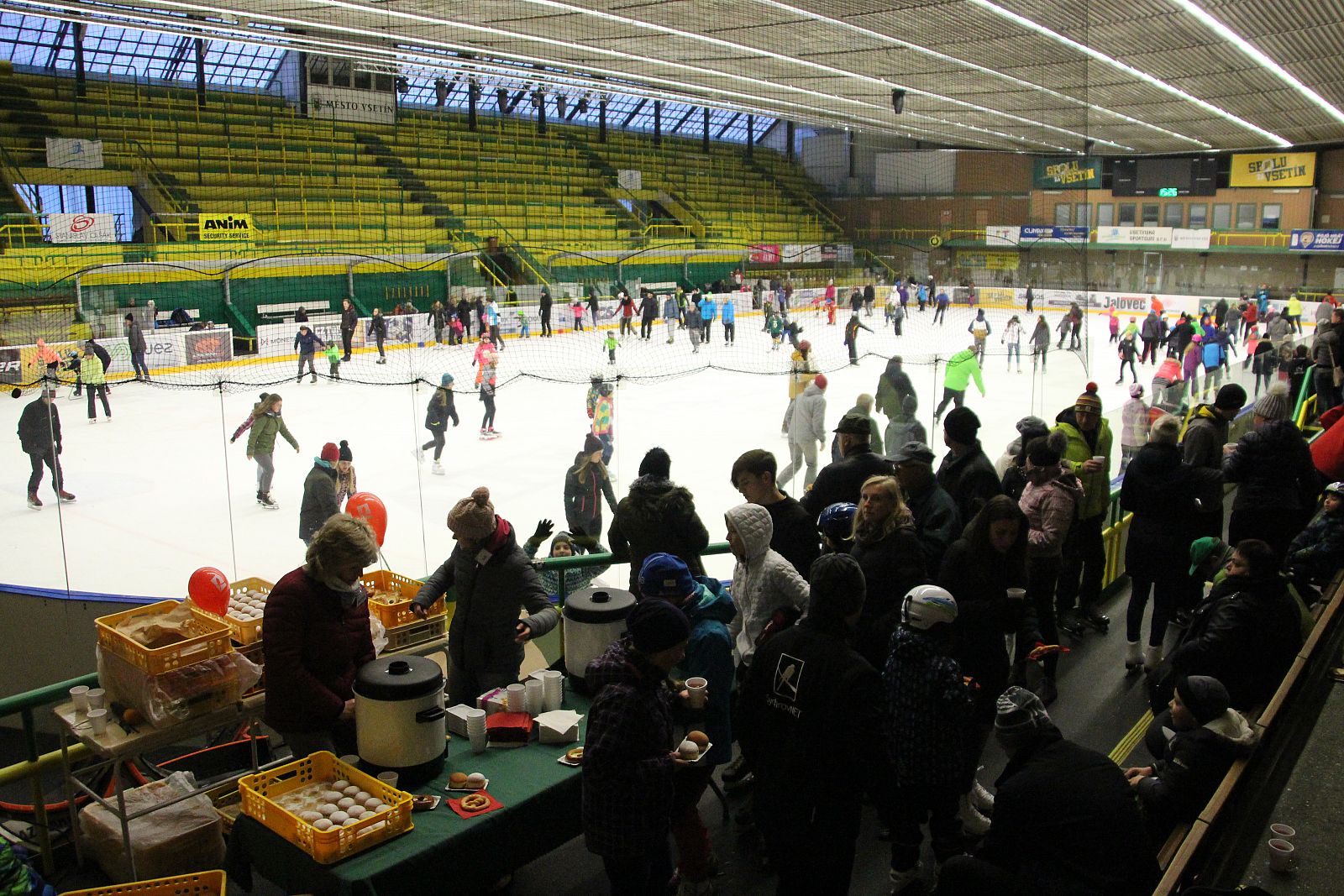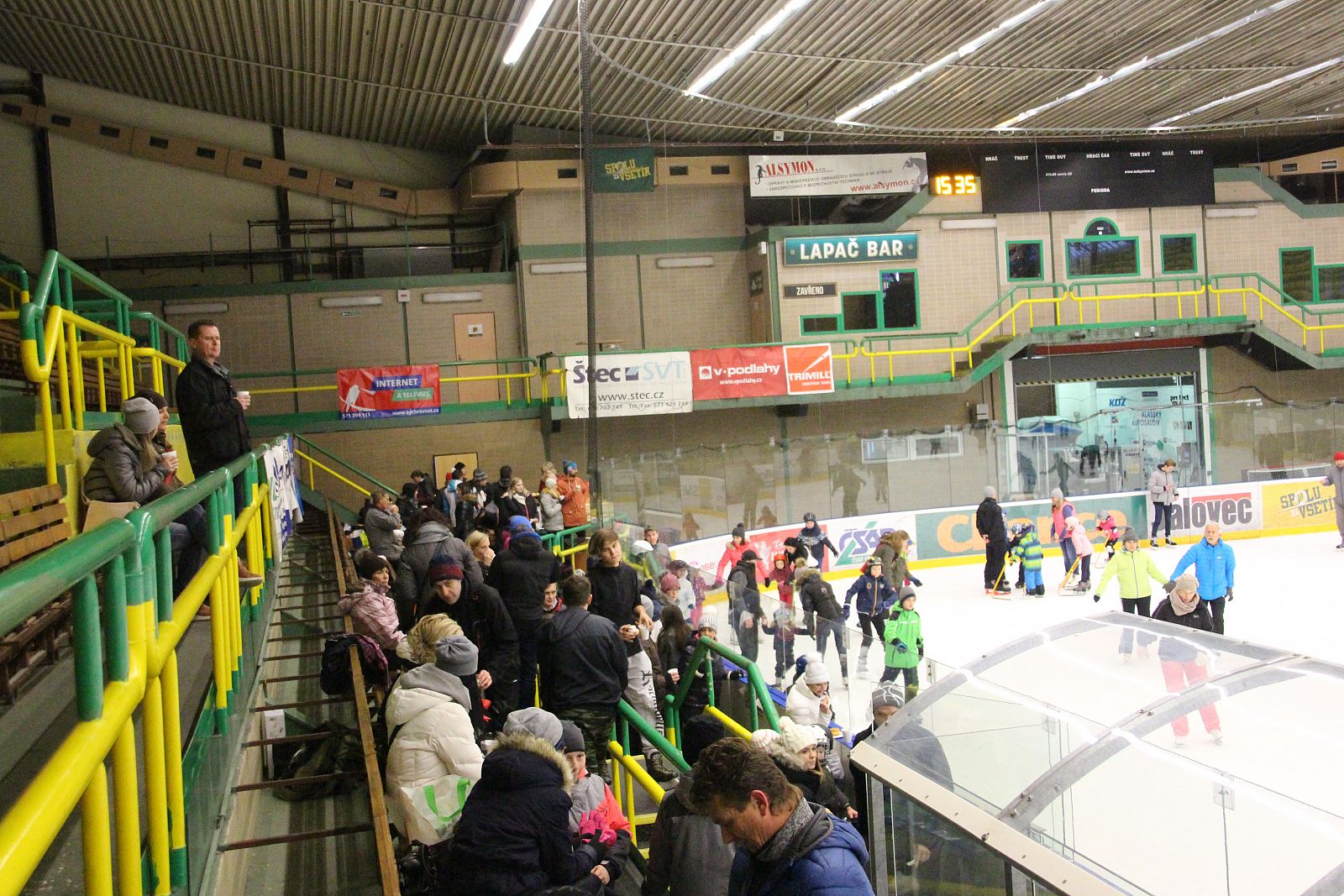Příchozí si mohli užít dvouhodinové bruslení zdarma, během kterého se podávaly teplé